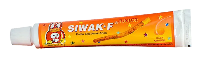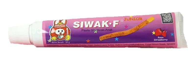 Pasta Gigi spesial untuk ANAK-ANAK dengan SIWAK plus FLUORIDE Merawat dan melindungi kesehatan gigi dan gusi anak disertai fluoride untuk mencegah timbulnya plak, radang gusi dan gigi berlubang.