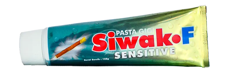 Pasta gigi Siwak F Sensitive Adalah pasta gigi khusus gigi sensitive dengan siwak plus fluoride. Perlindungan dan Perawatan Gigi Sensitive, melindungi gigi dari linu dan membersihkan tar, mencegah infeksi gigi, anti carries gigi dan menguatkan gigi.