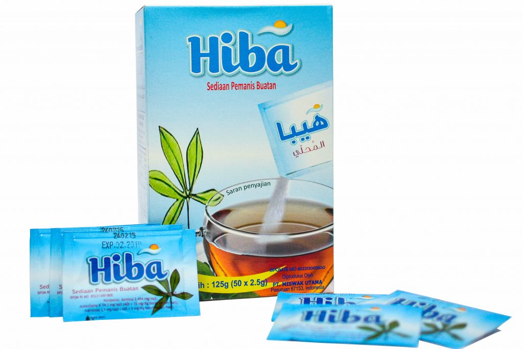Hiba pemanis buatan terbuat dari sukralosa ,rasanya seperti gula tanpa rasa pahit setelahnya,bisa digunakan untuk minuman panas atau dingain,serta sangat stabil untuk memasak dan memanggang ,rasa manisnya bertahan dalam segala kondisi.
