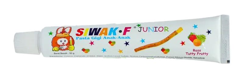 Pasta Gigi spesial untuk ANAK-ANAK dengan SIWAK plus FLUORIDE Merawat dan melindungi kesehatan gigi dan gusi anak disertai fluoride untuk mencegah timbulnya plak, radang gusi dan gigi berlubang.
